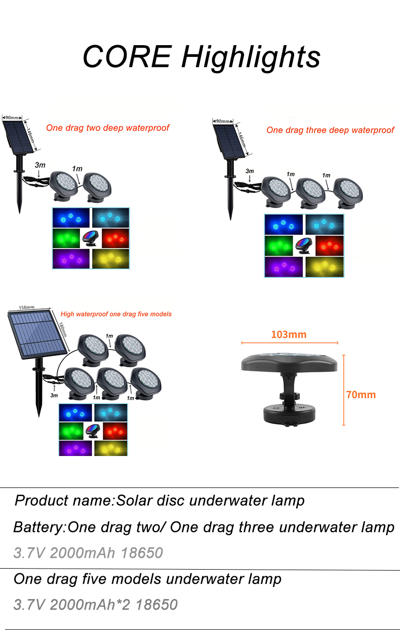 one-to-two,one-to-three and one-to-five solar underwater lights,catering to diverse lighting needs in various scenarios.