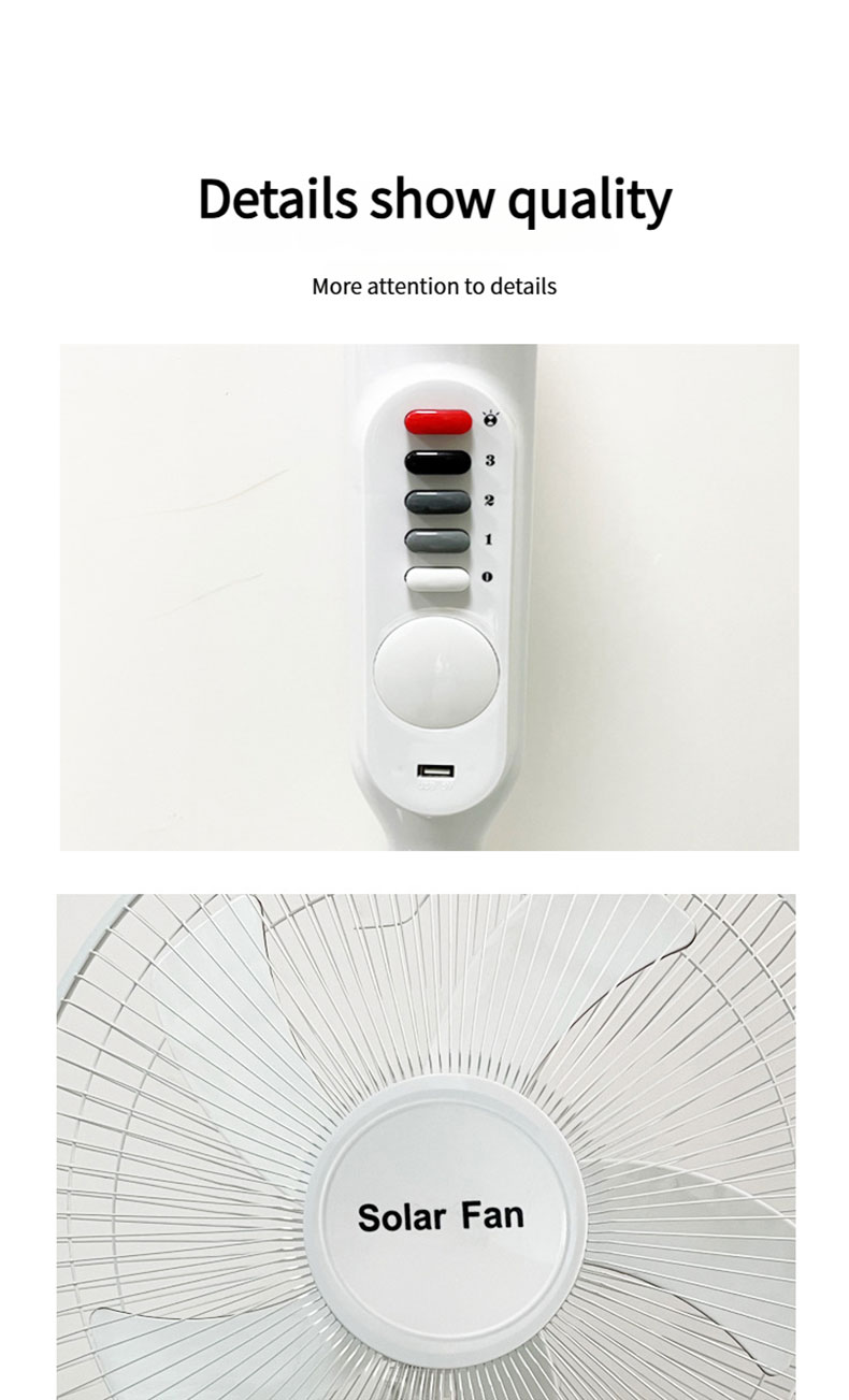 Savinglights solar fans offer 6 high-quality models to choose from, supporting dual charging modes of solar charging and data cable charging to meet power needs anytime and anywhere.Equipped with polycrystalline silicon solar panels, they achieve high-efficiency conversion of light energy, enabling green energy to continuously power the fans. With five fan blades, they provide a gentle breeze. Combined with a 120° wide-angle oscillating design, they can deliver air over a wider range. The telescopic lifting rod allows for flexible height adjustment, adapting to different usage scenarios. For detailed dimensions, please visit the product details page.