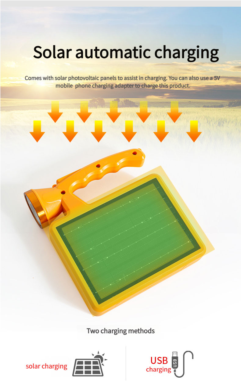 SavingLights solar flashlight is equipped with a polycrystalline silicon solar panel that achieves 18%-20% energy conversion efficiency,enabling continuous auxiliary charging via sunlight.
