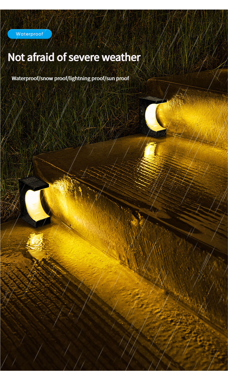 SavingLights presents the new crescent-shaped solar step lights, equipped with monocrystalline silicon solar panels for high energy conversion efficiency. Featuring an intelligent light-control system, they offer two color temperatures: warm light and cool white light. With IP65-rated hardcore protection, they easily withstand harsh environments. The innovative adhesive mounting design ensures hassle-free installation.