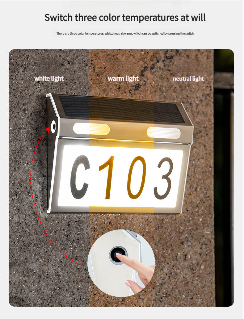 With three color temperatures—white light, warm light, and neutral light—SavingLights Solar Doorplate Light meets the lighting needs of different scenarios.