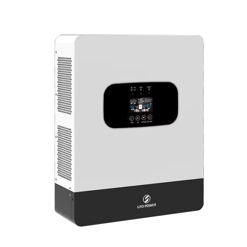 UFO-POWER Single Phase Off-Grid Inverter. 1.8-3.6KVA, 100/145V/230V, 12/24V, IP21 design. Pure sine wave output, support LFP & SLA battery, 2 years warranty. Certified: CE, EN 62109-1, EN 62109-2, IEC 61000.