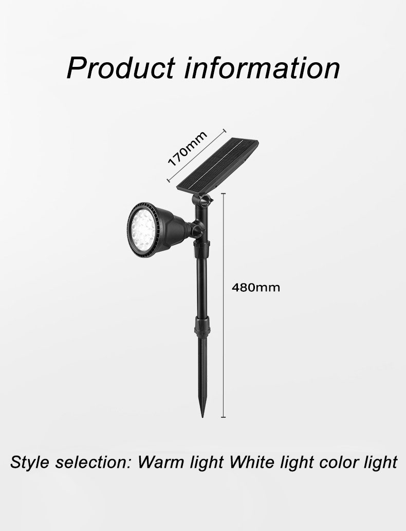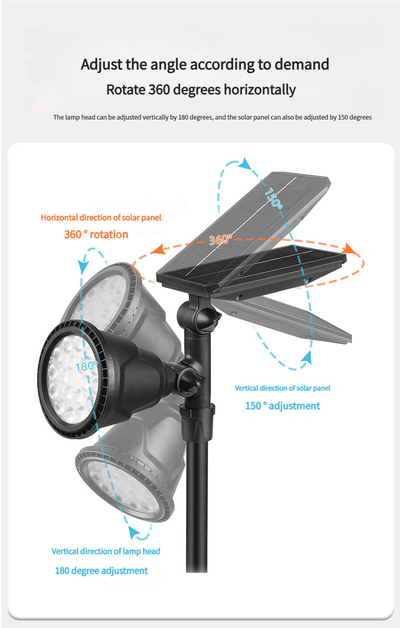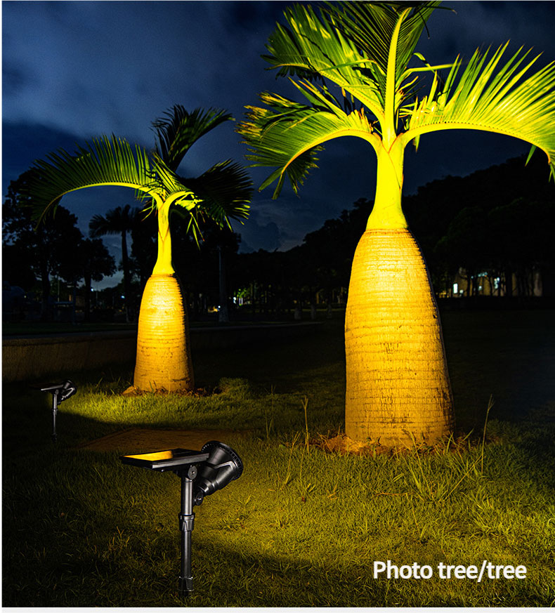 savinglights Smart Induction Solar Spotlight is specially designed for outdoor use. It automatically turns on at dusk without manual operation. The lamp head and solar panel can be flexibly adjusted by 180 degrees. It is easy to install, and two brightness levels can be switched as needed. Equipped with a monocrystalline silicon solar panel, it greatly improves the photoelectric conversion efficiency and provides more guaranteed battery life. The high - concentration light design enables a longer range. Whether it is to illuminate garden paths or highlight vegetation landscapes, it can easily handle the task. Please refer to the details page for the specific dimensions.