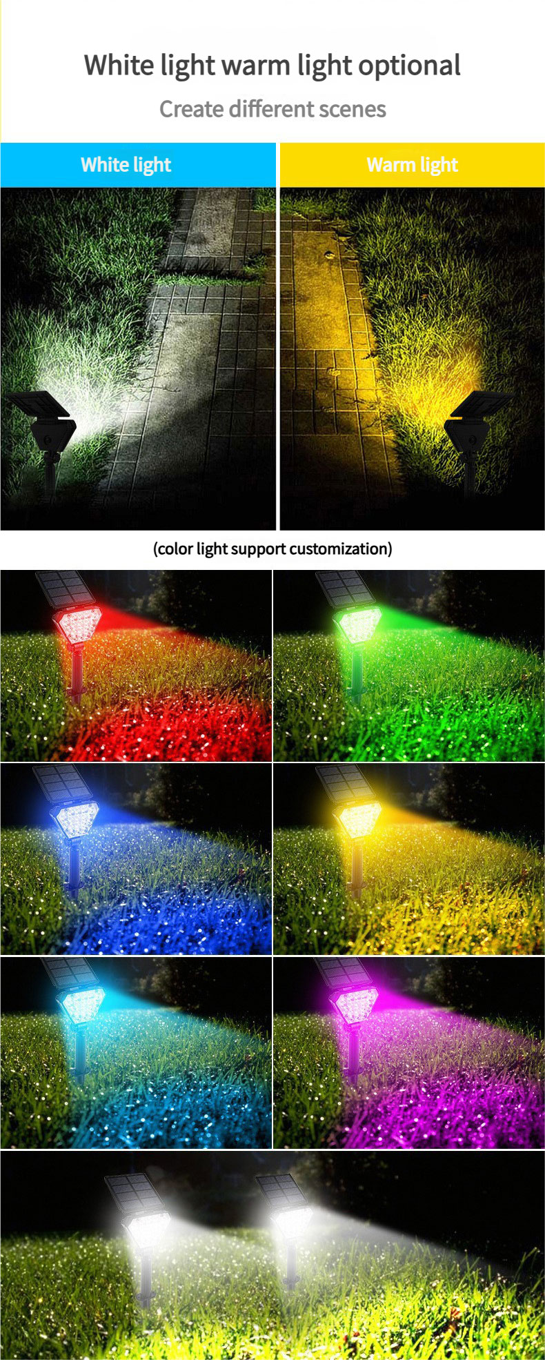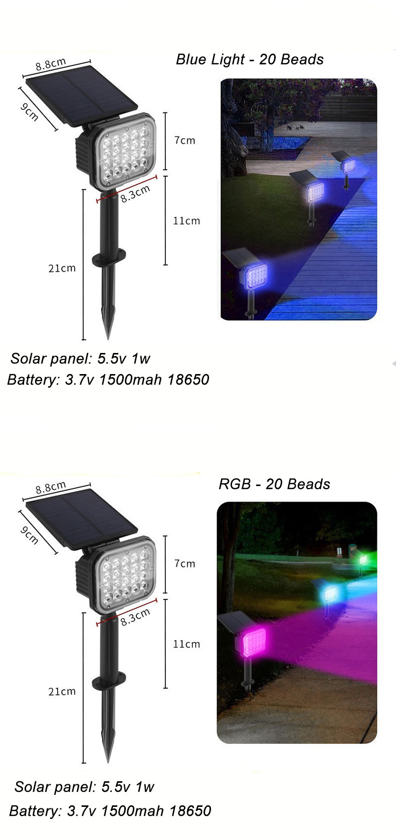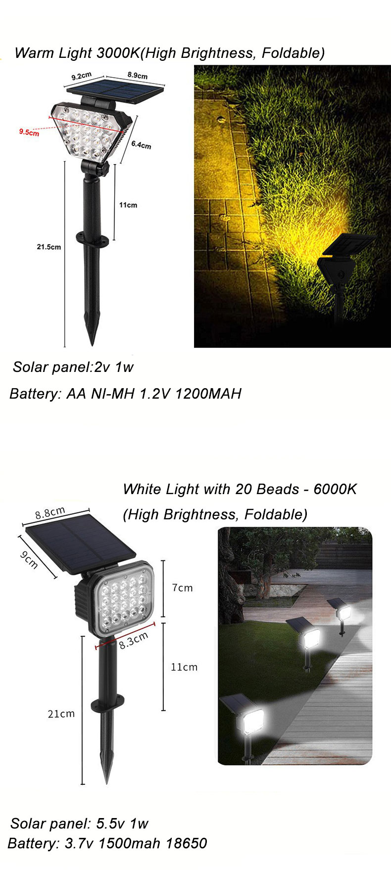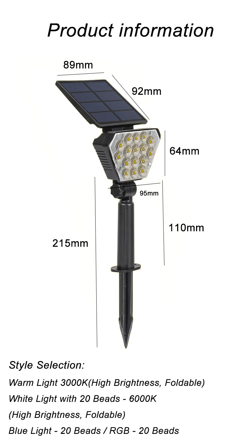 With an IP65 outdoor protection rating, it is not afraid of thunderstorms. Two lighting modes can be switched with one click, adapting to lighting at different times. For detailed dimensions and functions, please refer to the d