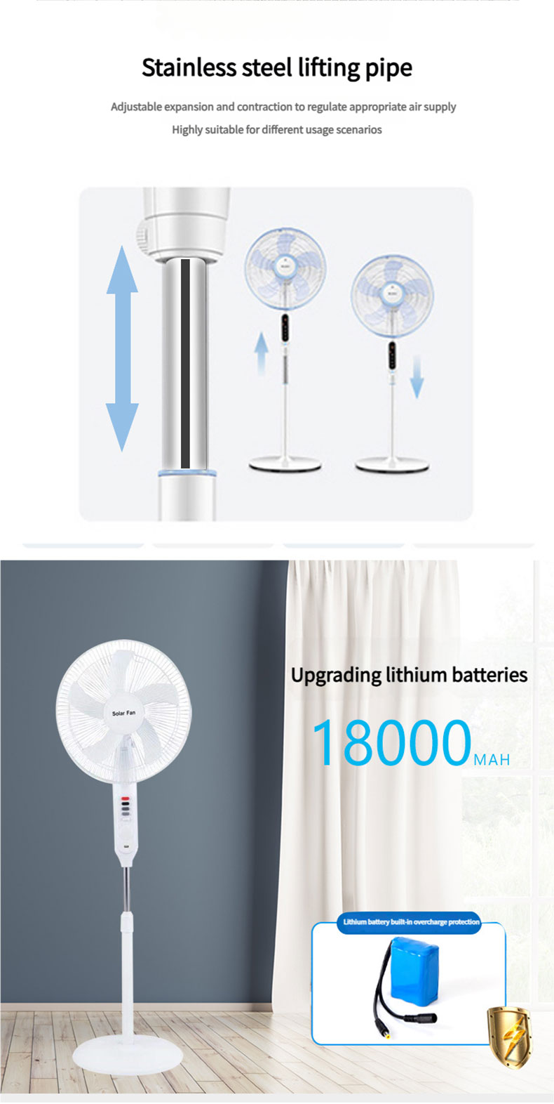 Savinglights solar fans offer 6 high-quality models to choose from, supporting dual charging modes of solar charging and data cable charging to meet power needs anytime and anywhere.Equipped with polycrystalline silicon solar panels, they achieve high-efficiency conversion of light energy, enabling green energy to continuously power the fans. With five fan blades, they provide a gentle breeze. Combined with a 120° wide-angle oscillating design, they can deliver air over a wider range. The telescopic lifting rod allows for flexible height adjustment, adapting to different usage scenarios. For detailed dimensions, please visit the product details page.