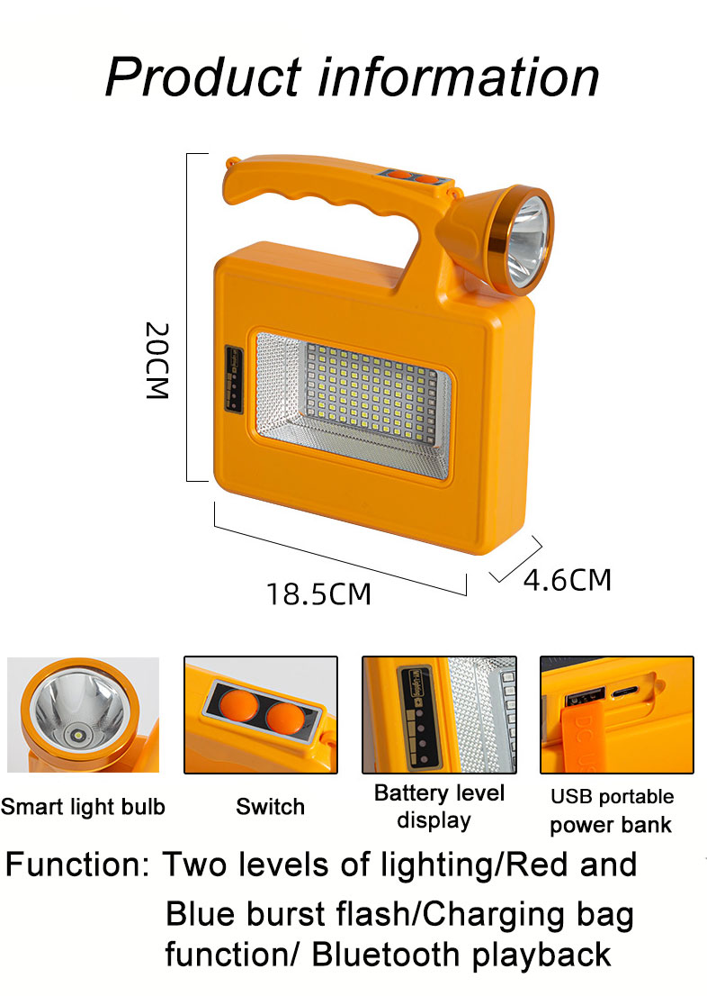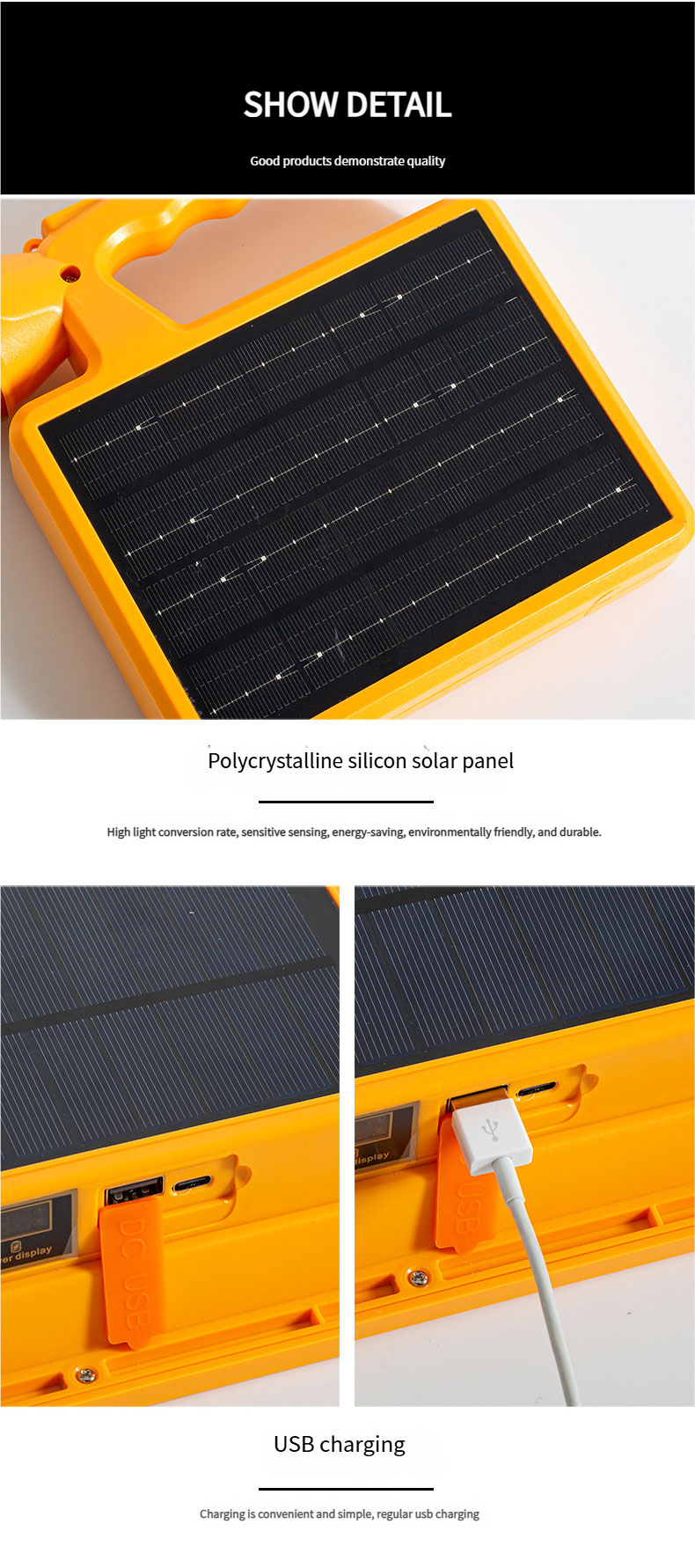 Paired with a USB charging port, it supports dual-mode power supply—"solar energy + electricity"—to maintain full charge in both outdoor sunny conditions and indoor emergency scenarios.