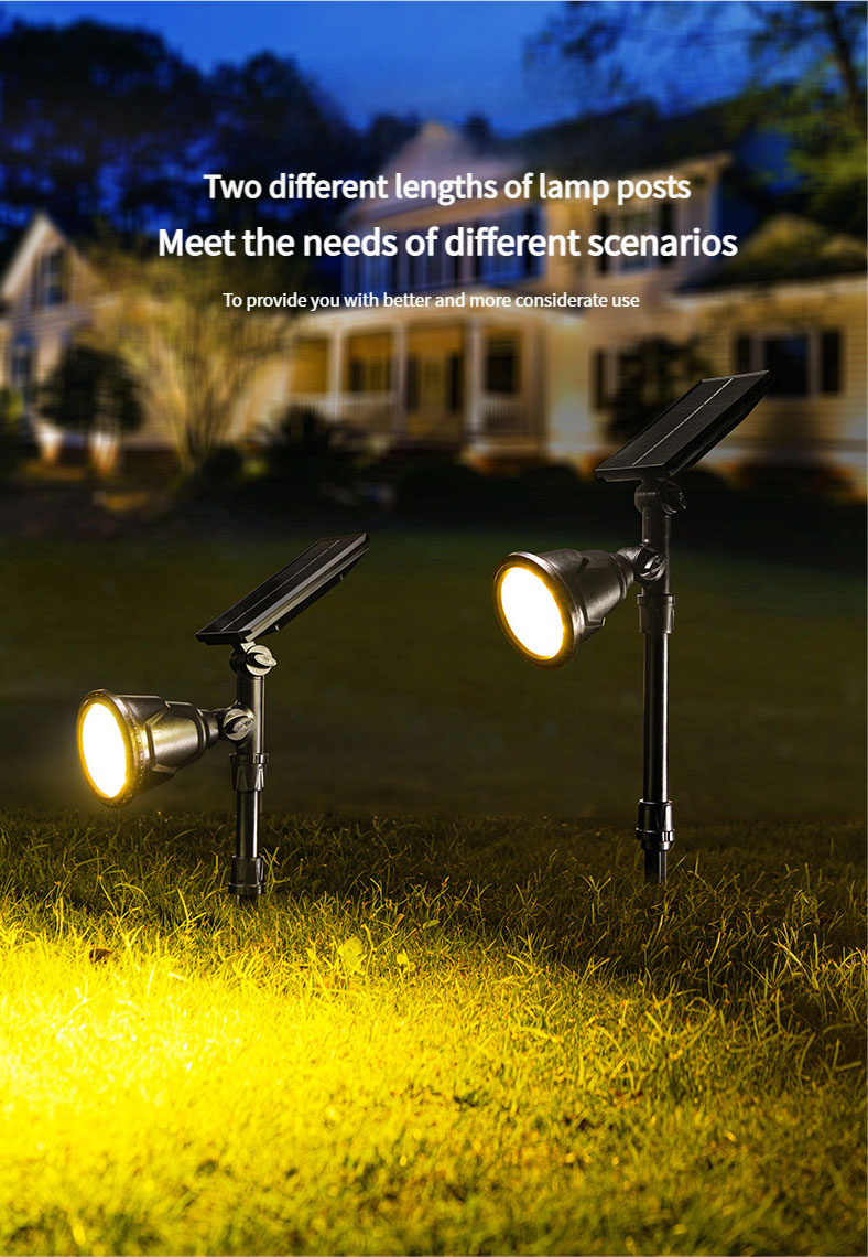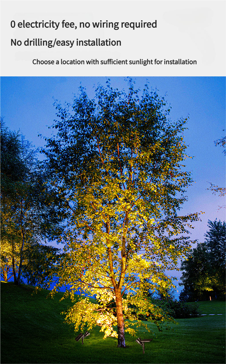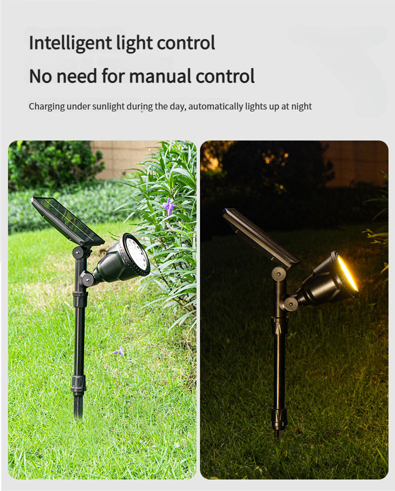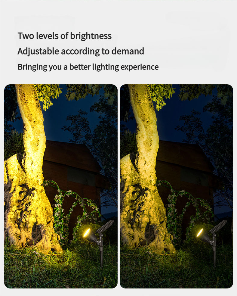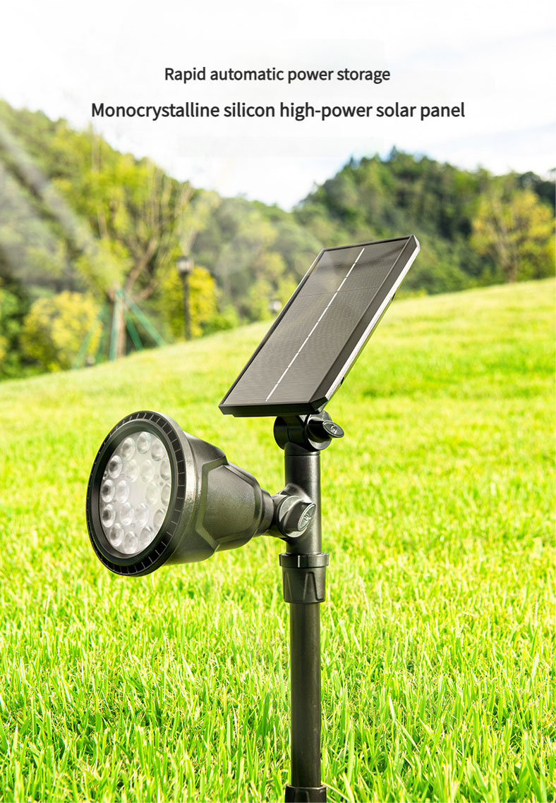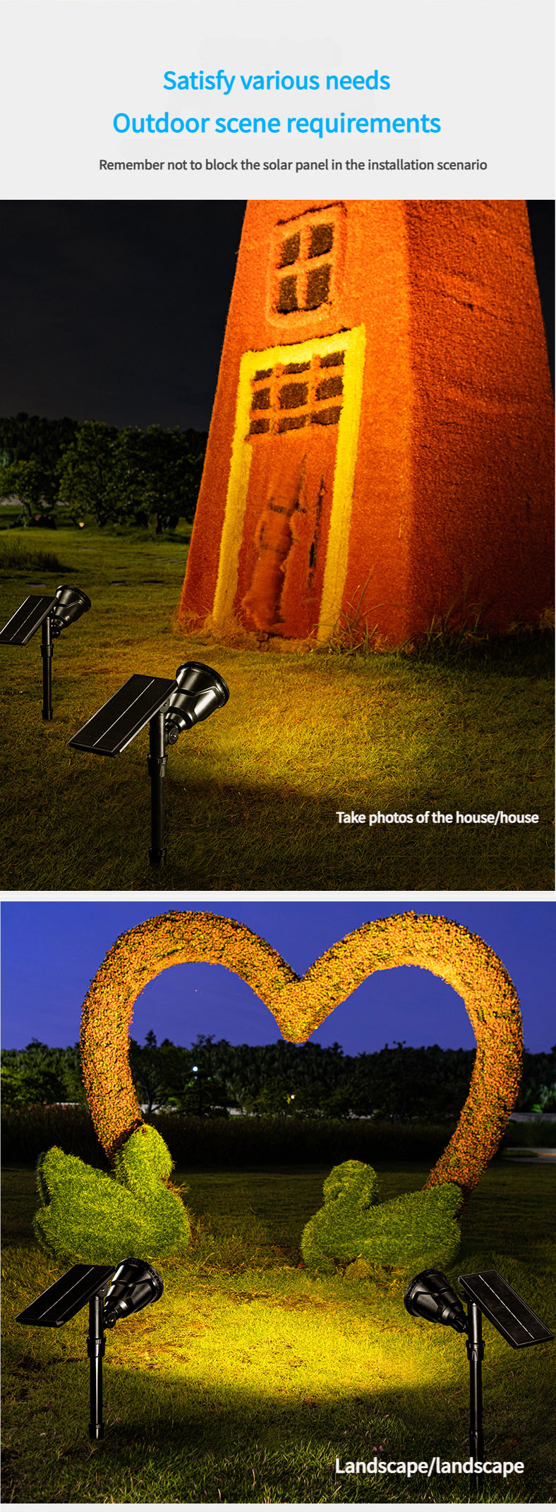 savinglights Smart Induction Solar Spotlight is specially designed for outdoor use. It automatically turns on at dusk without manual operation. The lamp head and solar panel can be flexibly adjusted by 180 degrees. It is easy to install, and two brightness levels can be switched as needed. Equipped with a monocrystalline silicon solar panel, it greatly improves the photoelectric conversion efficiency and provides more guaranteed battery life. The high - concentration light design enables a longer range. Whether it is to illuminate garden paths or highlight vegetation landscapes, it can easily handle the task. Please refer to the details page for the specific dimensions.