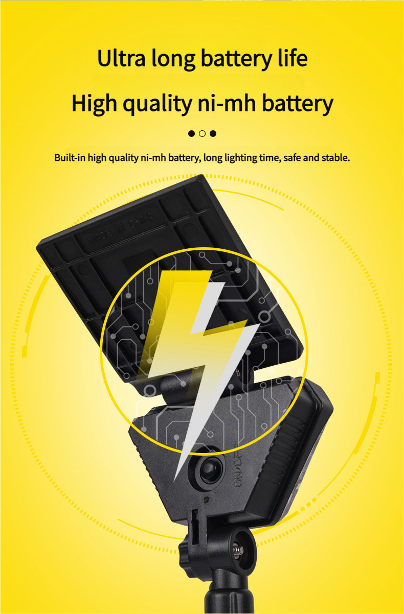 It has excellent performance. With a long range and a polycrystalline silicon solar panel, it has high photoelectric conversion efficiency, making charging efficient and energy - saving. The lamp head and solar panel can be adjusted at multiple angles to meet different lighting and illumination needs. The built - in nickel - hydrogen battery has an ultra - long battery life, so there is no need for frequent charging.