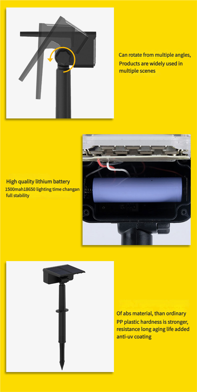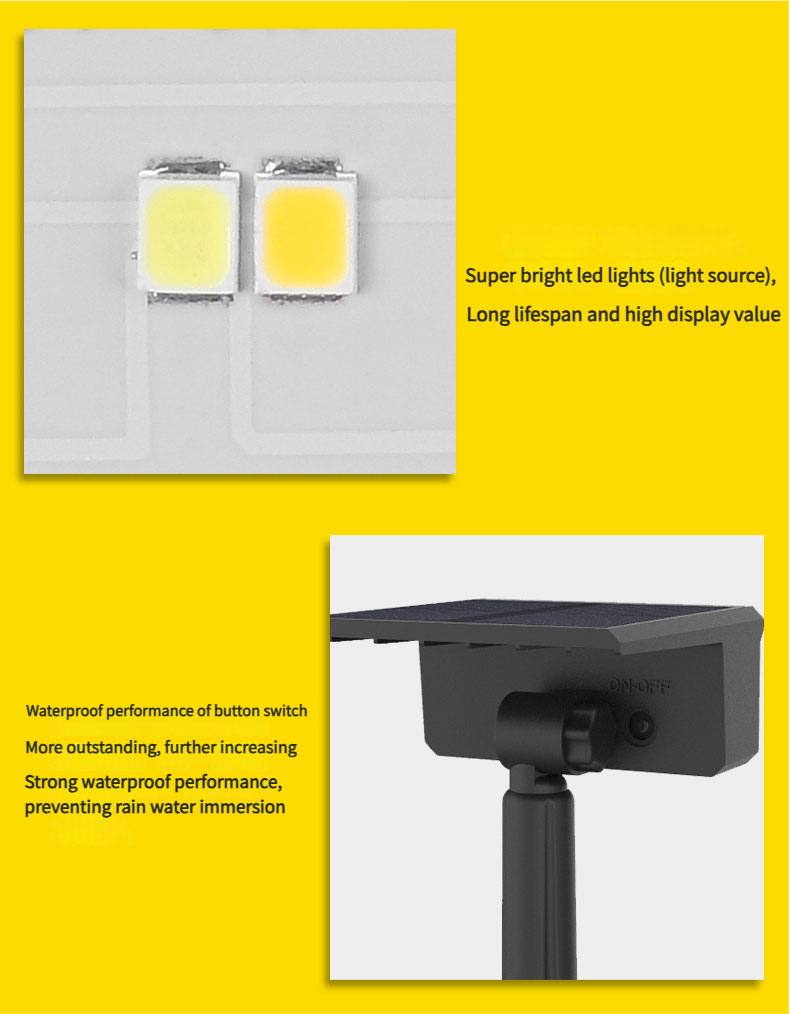 The lamp head can be freely adjusted, paired with high-brightness LED beads, it has a long range and concentrated light. It supports one-key switching and two-level brightness adjustment to meet the lighting needs of different scenarios. Equipped with a polysilicon solar panel, it has higher photoelectric conversion efficiency. Combined with the built-in 18650 lithium battery, it ensures stable energy storage and better energy conservation. The intelligent light control design can automatically sense changes in light, making it worry-free and convenient to use.