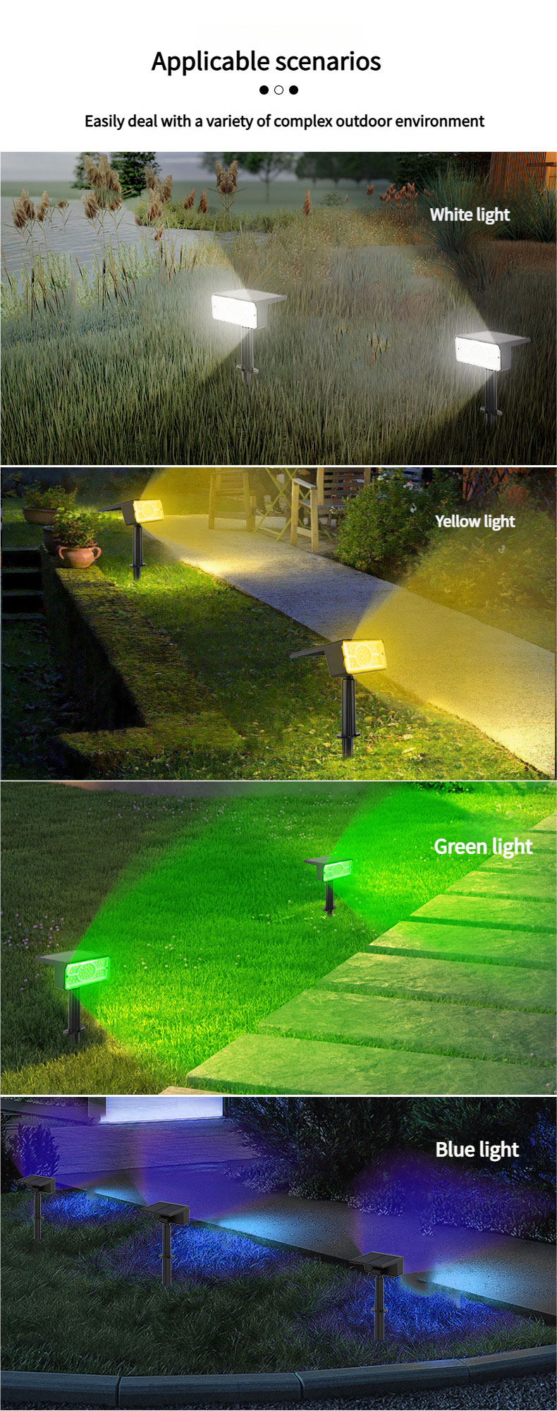 savinglights solar spotlight comes with four color temperature options, allowing you to easily create diverse lighting atmospheres. With IP65 rating for outdoor use, it is waterproof and dustproof, capable of handling various complex environments, and is durable and reliable.