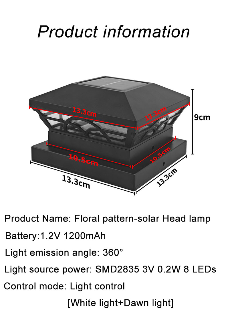 SavingLights Solar Post Lights - Patterned Version Dual-Color Smart Switch Outdoor Garden Lights (White + Warm Light)